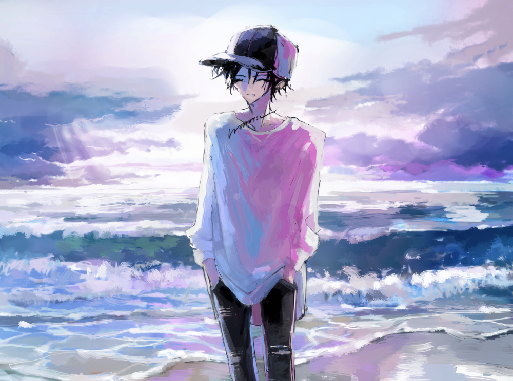 イラスト本「LETTER FROM FAR AWAY」のノベルティとして配布した小説「遠方からの手紙」の表紙として描いた絵でした。ありし日の青島。