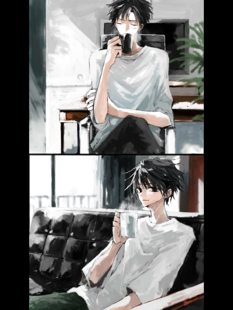 あまり計画もなく描き始めたのですが、小説のワンシーンを漫画風に配置してみたらいい感じになった絵です。